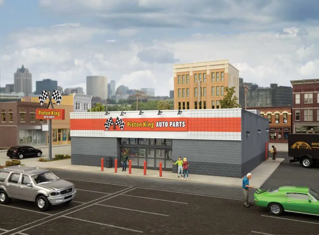 Whether restoring a classic or keeping the daily driver ready for the road, HO motorists will find all the supplies they need at the Cornerstone Auto Parts Store! The detailed HO structure kit is typical of businesses found in many modern cities and comes loaded with details including: