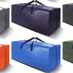 Tote bag that holds 5 of these storage boxes that feature interior dimensions of 28″ x 12″ x 2″